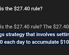 The “$27.40 rule” is a savings strategy that involves saving approximately $27.40 every day to accumulate about $10,000 in a year. It is a simple and accessible method that encourages consistent saving and budgeting discipline by making small, daily contributions to a savings account. This approach helps people reach a significant financial goal over a year, and the funds can grow further with compound interest.