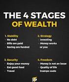The four stages of wealth are typically defined as Stability, Accumulation/Growth, Security/Preservation, and Freedom/Legacy. In the first stage, you focus on paying bills and building a stable financial foundation. The second stage involves growing your wealth through investing. The third stage is about preserving your assets and generating income. The final stage is using your wealth for personal fulfillment and passing a legacy to others.